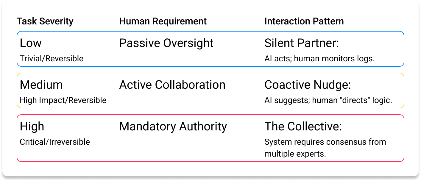 Being the "Ethical Voice" in these rooms can be difficult; it is far easier to facilitate increased KPIs than to pause a launch to demand a UI that plans for failure. However, by applying a Severity-to-Interaction framework, we move beyond the "Easy Button" to provide the Observability and Directability required when an AI reaches its limits. This transforms the UI into a functional Human Authority Point—turning the user from a passive witness into an active partner in a Joint Cognitive System, equipped to intervene before the cable snaps.